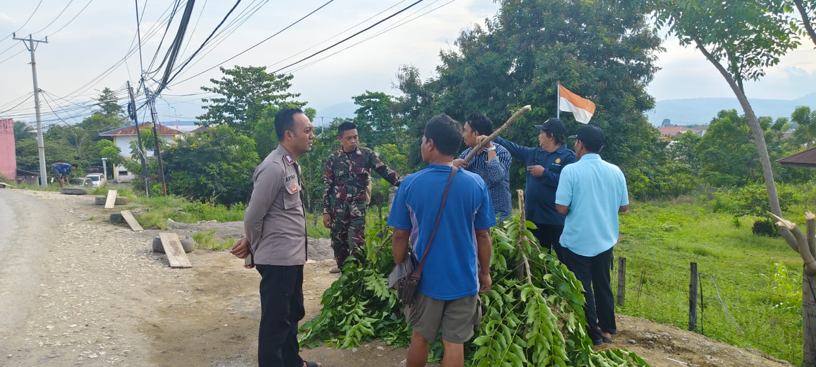 Babinsa bersama Forkopimcam Saat Tertibkan Badan Jalan di Desa Keurea