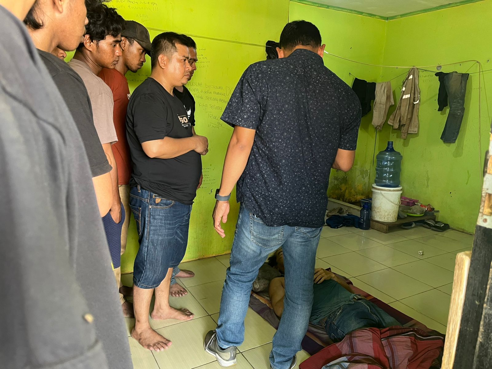 Morowali- Babinsa Koramil 1311-09/Bahodopi Sertu Marhadi bersama personel Polsek Bahodopi bergerak cepat melakukan evakuasi terhadap penemuan jenazah seorang pria di salah satu kos-kosan warna hijau di Dusun I, Desa Bahodopi, Kecamatan Bahodopi, Kabupaten Morowali, Rabu (15/10/2025).