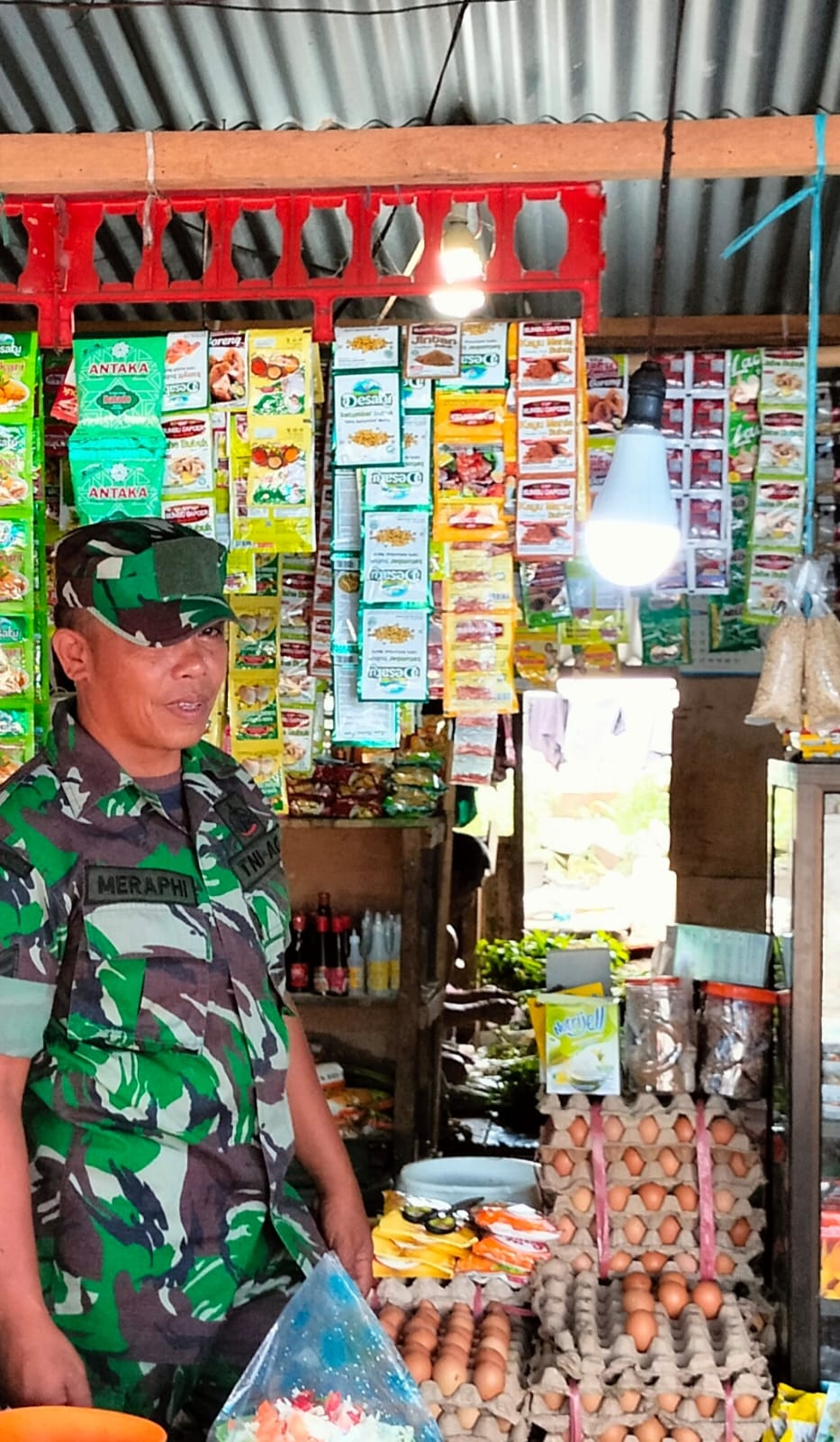 Morowali— Dalam rangka menjaga stabilitas harga dan memastikan ketersediaan bahan kebutuhan pokok di wilayah binaannya, Babinsa Koramil 1311-09/Bahodopi, Serka Abd. Havid Meraphi, melaksanakan pengecekan harga sembako secara rutin di Desa Mekarti Jaya, Kecamatan Bahodopi, Kabupaten Morowali.