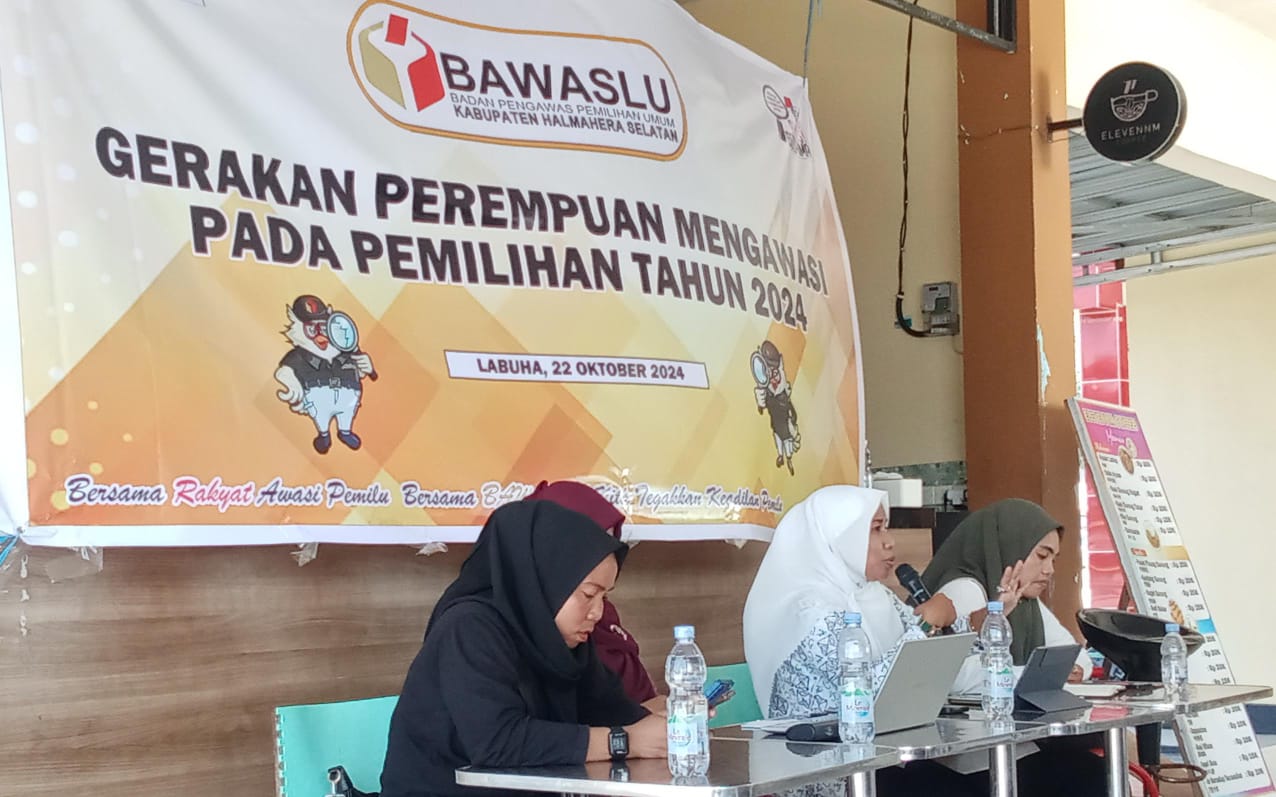 Halsel – Badan Pengawas Pemilihan Umum (Bawaslu) Kabupaten Halmahera Selatan (Halsel) menggelar kegiatan “Gerakan Perempuan Mengawasi, Selasa 22 Oktober 2024.
