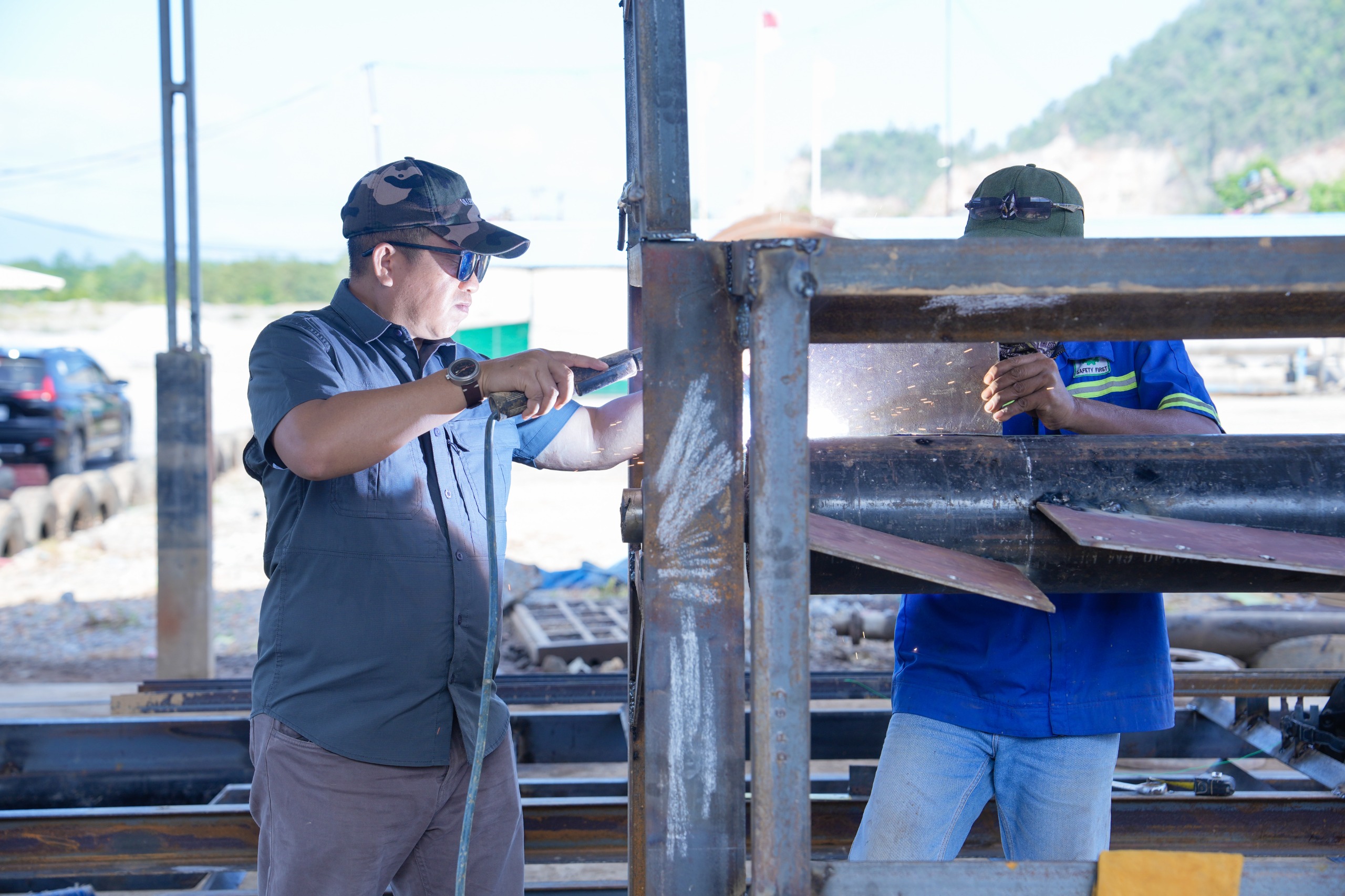 Menariknya, Bupati Iksan tidak hanya meninjau, tetapi juga turun langsung memegang peralatan kerja, mengelas, hingga memotong besi pada konstruksi mesin. Keterlibatan langsung orang nomor satu di Morowali ini menjadi bentuk dukungan penuh terhadap inovasi penanganan sampah berbasis teknologi lokal.