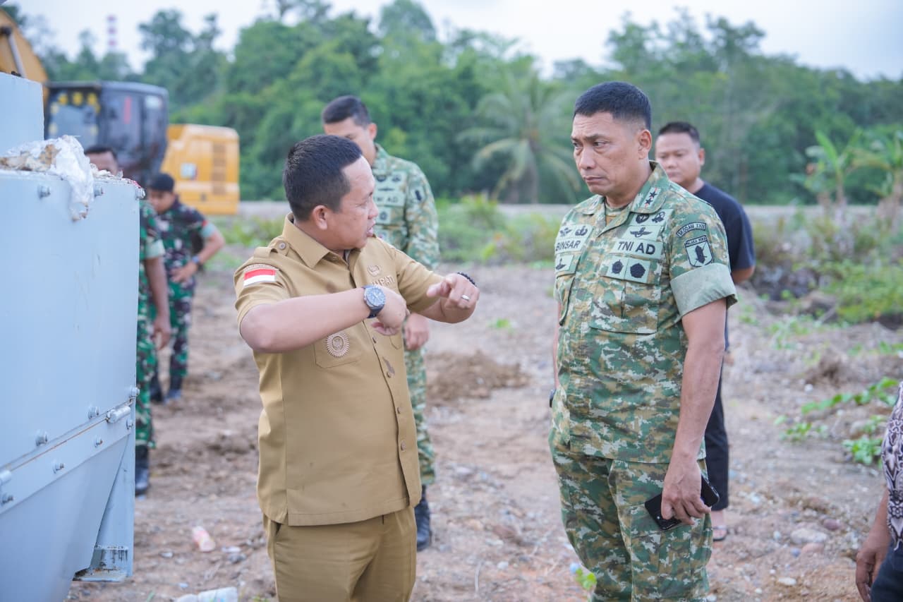 Morowali, Sulawesi Tengah- Pangdam XXIII/Palaka Wira, Mayjen TNI Jonathan Binsar Parluhutan Sianipar, bersama Kepala Kejaksaan Tinggi (Kejati) Sulawesi Tengah, Nuzul Rahmat kagum dengan inovasi mesin pengolah sampah yang dirancang langsung oleh Bupati Morowali, Iksan Baharudin Abdul Rauf.