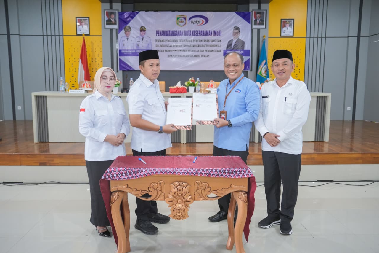 Morowali, Sulawesi Tengah- Pemerintah Kabupaten Morowali terus menunjukkan komitmennya untuk mewujudkan tata kelola pemerintahan yang bersih dan transparan. Hal itu dibuktikan dengan penandatanganan kerja sama (MoU) antara Pemkab Morowali dan Badan Pengawasan Keuangan dan Pembangunan (BPKP) Perwakilan Sulawesi Tengah.