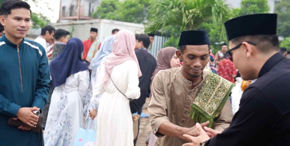 Ibadah salat Idulfitri 1 Syawal 1446 Hijriah dipimpin oleh imam ustaz Rahmatullah. Setelah menunaikan salat Ied, jemaah menyimak siraman rohani dari khatib ustaz H. Mahadin.