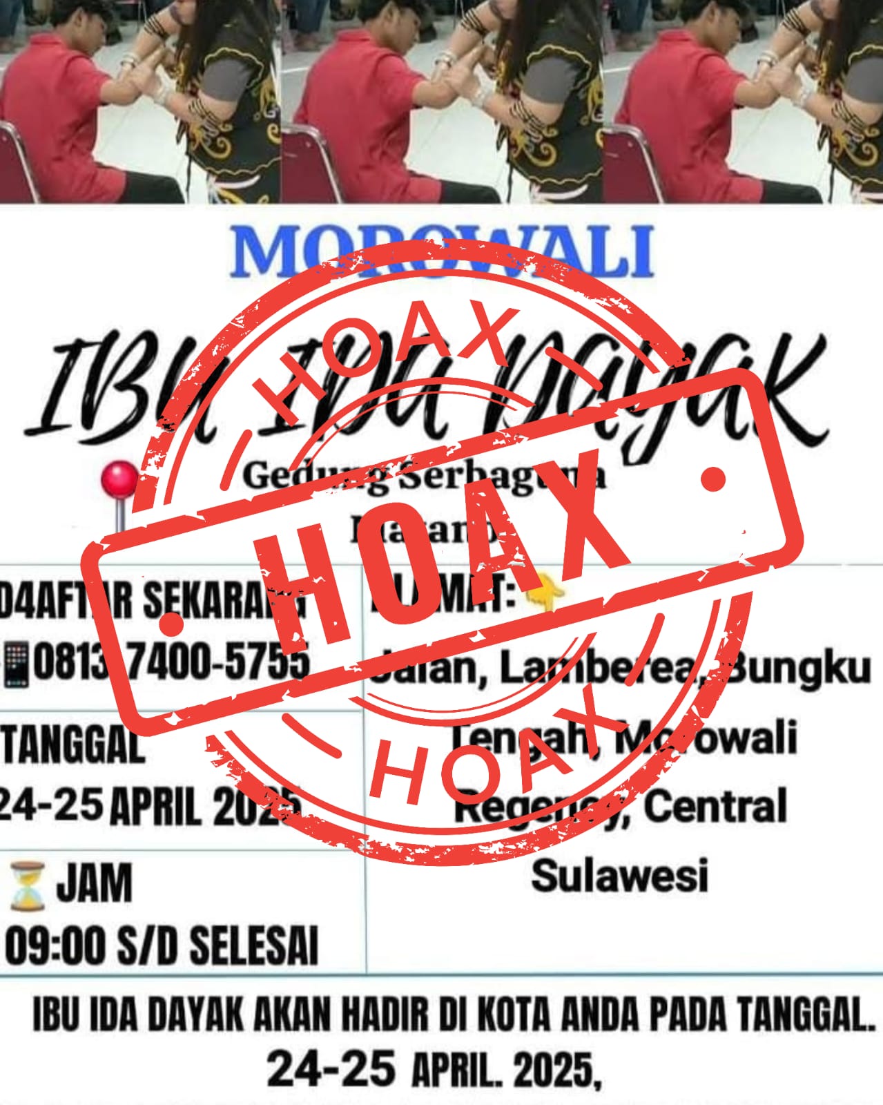 Pasalnya, baru-baru ini beredar informasi di media sosial bahwa Ibu Ida Dayak yang sempat viral bisa menyembuhkan berbagai macam penyakit akan hadir di Kabupaten Morowali.