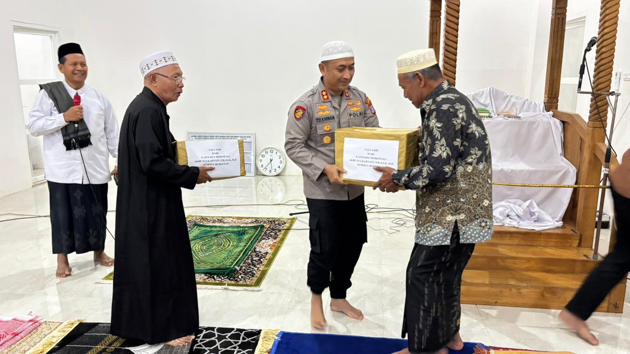 Rangkaian kegiatan meliputi shalat subuh berjamaah, imbauan kamtibmas serta penyerahan bingkisan oleh Kapolres Morowali.