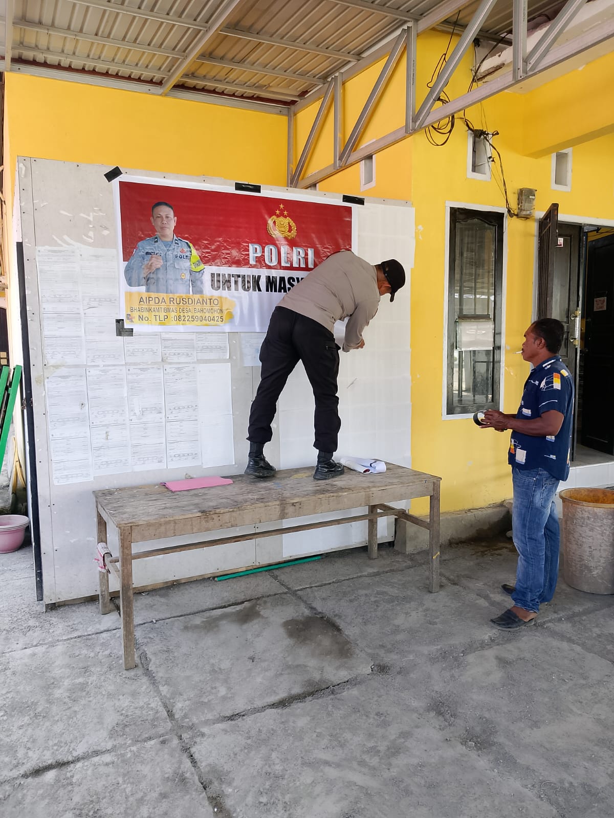 Pada Jumat (3/10/2025), Bhabinkamtibmas Desa Bahomohoni, Desa Matansala, dan Kelurahan Bungi Kecamatan Bungku Tengah, Aipda Rusdianto, melakukan pemasangan baliho layanan pengaduan di kantor desa dan pos kamling setempat.