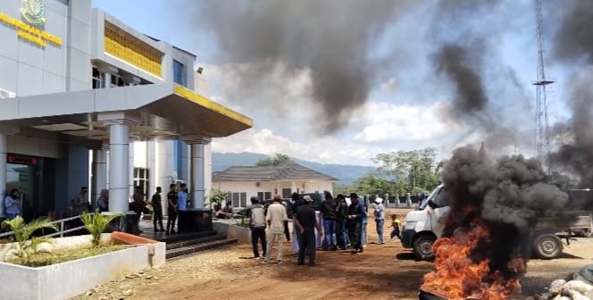 Massa juga menegaskan agar aparat penegak hukum segera melakukan penindakan terhadap pihak-pihak yang diduga terlibat dalam kasus tersebut.