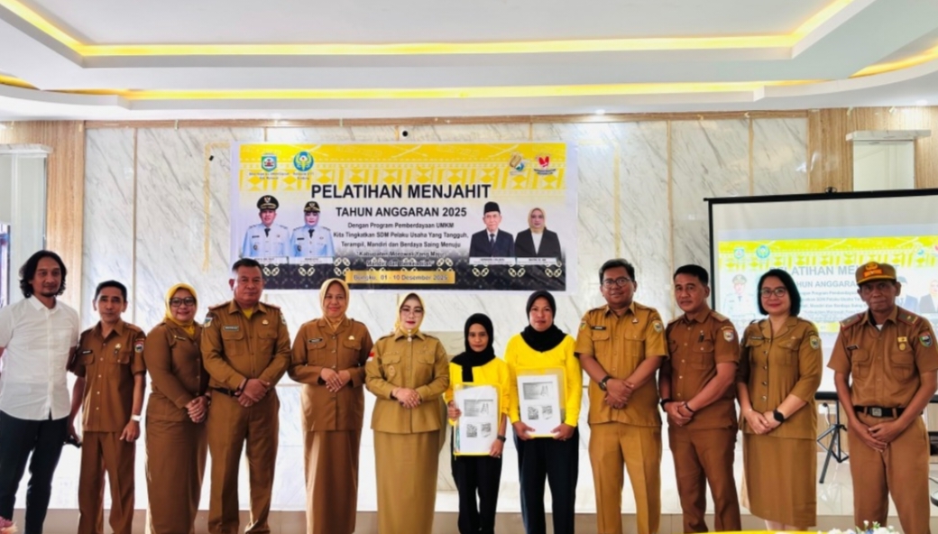 Morowali, Sulawesi Tengah — Wakil Bupati Morowali, Iriane Iliyas, S.E., menghadiri sekaligus membuka secara resmi Pelatihan Menjahit Tahun Anggaran 2025 yang digelar di Aula Hotel Grand Qafia, Kompleks KTM Fonuasingko, Senin (01/11/2025). Kegiatan ini menjadi bagian dari program peningkatan kualitas SDM di sektor usaha konveksi guna mendorong pertumbuhan UMKM mandiri dan berdaya saing di Kabupaten Morowali.
