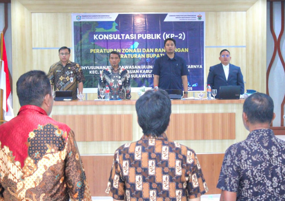 Morowal, Sulawesi Tengah— Pemerintah Daerah Kabupaten Morowali melalui Dinas Pekerjaan Umum dan Penataan Ruang (PUPR) bekerja sama dengan Lembaga Penelitian dan Pengabdian kepada Masyarakat (LPPM) Universitas Hasanuddin menggelar Konsultasi Publik (KP-2) terkait Peraturan Zonasi dan Rancangan Peraturan Bupati dalam rangka penyusunan Rencana Detail Tata Ruang (RDTR) Kawasan Ulunambo dan sekitarnya, Kecamatan Menui Kepulauan, Kabupaten Morowali. Kegiatan berlangsung di Hotel Metro Morowali, Kamis (27/11/25).