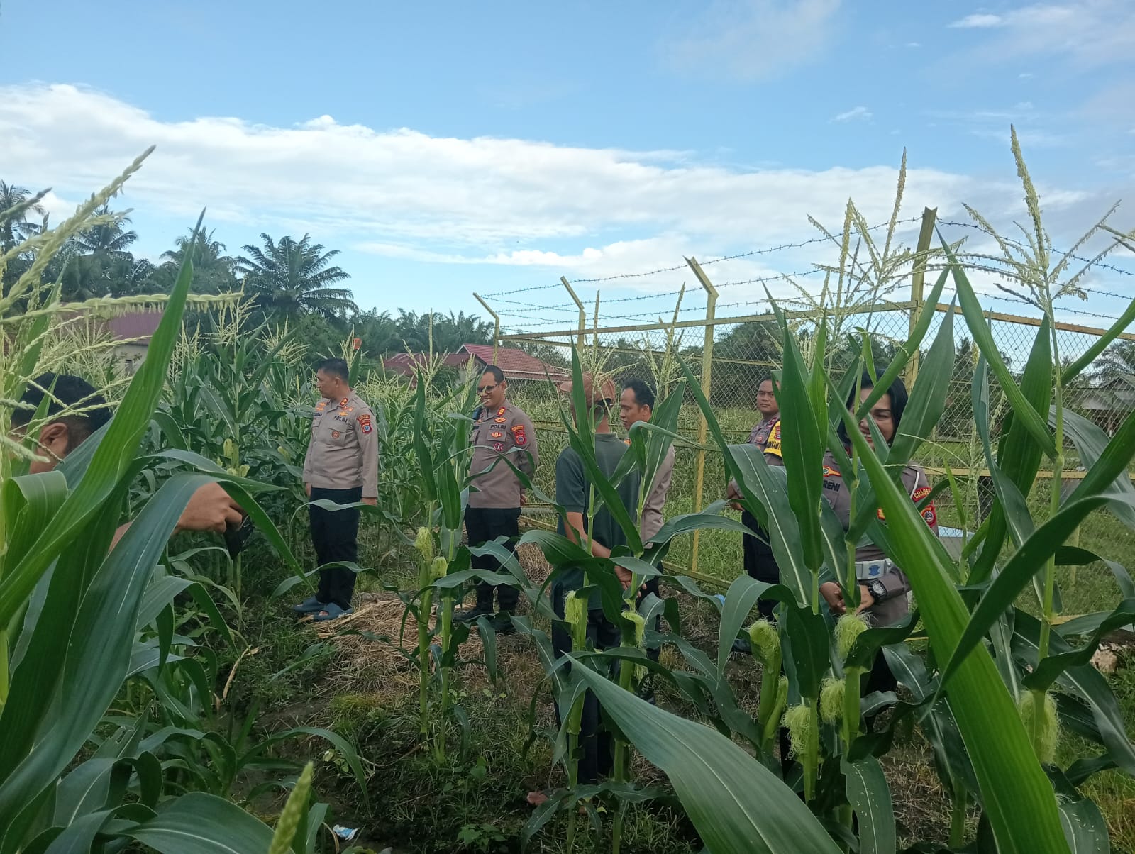 Morowali- Kapolres Morowali AKBP Zulkarnain, S.H., S.I.K., M.H. bersama Ketua Bhayangkari dan jajaran Pejabat Utama Polres Morowali turun langsung ke lapangan meninjau lahan ketahanan pangan penanaman jagung di Desa Bumi Harapan, Kecamatan Wita Ponda.(7/9/25)