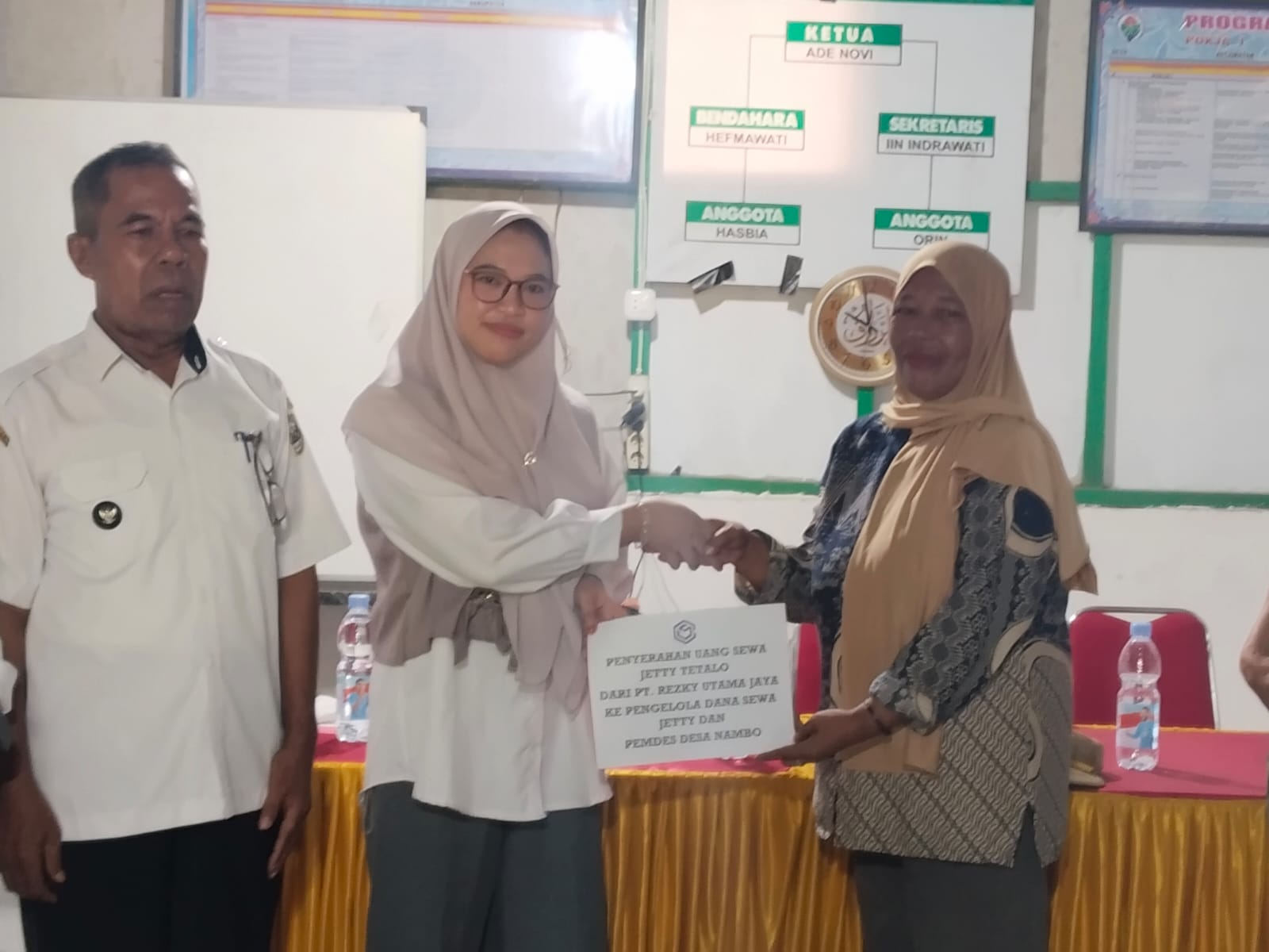 “Hari ini kami menyerahkan secara simbolis sewa jety Tetalo untuk masyarakat Desa Nambo. Kami berharap Pemdes bersama TPK segera menggelar pertemuan agar dana ini disalurkan secara terbuka dan diketahui seluruh masyarakat,” ujarnya.