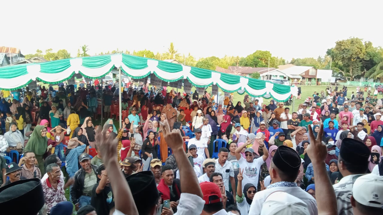 Halsel – Ribuan pendukung Pasangan Calon Bupati dan wakil bupati Halmahera Selatan, Rusihan Jafar dan Muhtar Sumaila, padati kampanye terbuka terbatas di Desa Laiwui Kecamatan Obi. Minggu 17 November 2024.