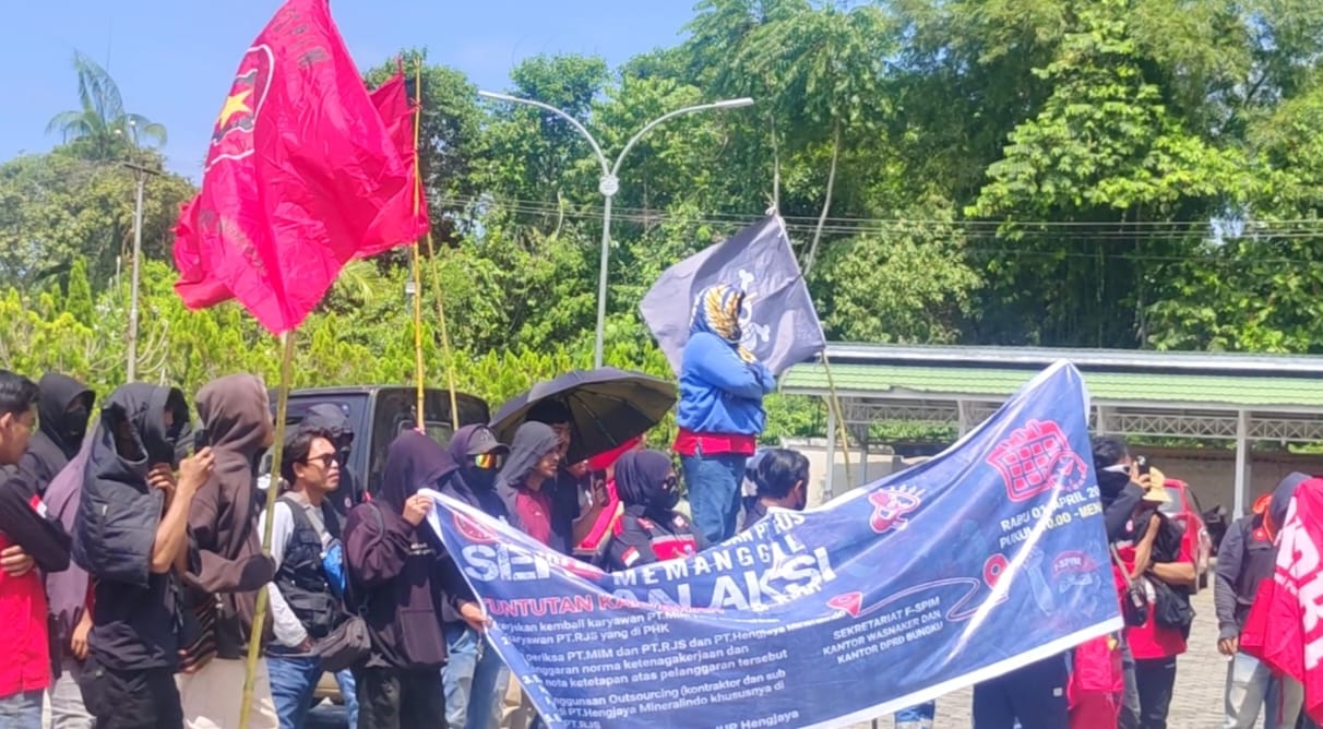 Aksi ini dilakukan sebagai respons terhadap kebijakan ketenagakerjaan di sejumlah perusahaan tambang, khususnya PT MIM dan PT RJS, yang dinilai merugikan pekerja.