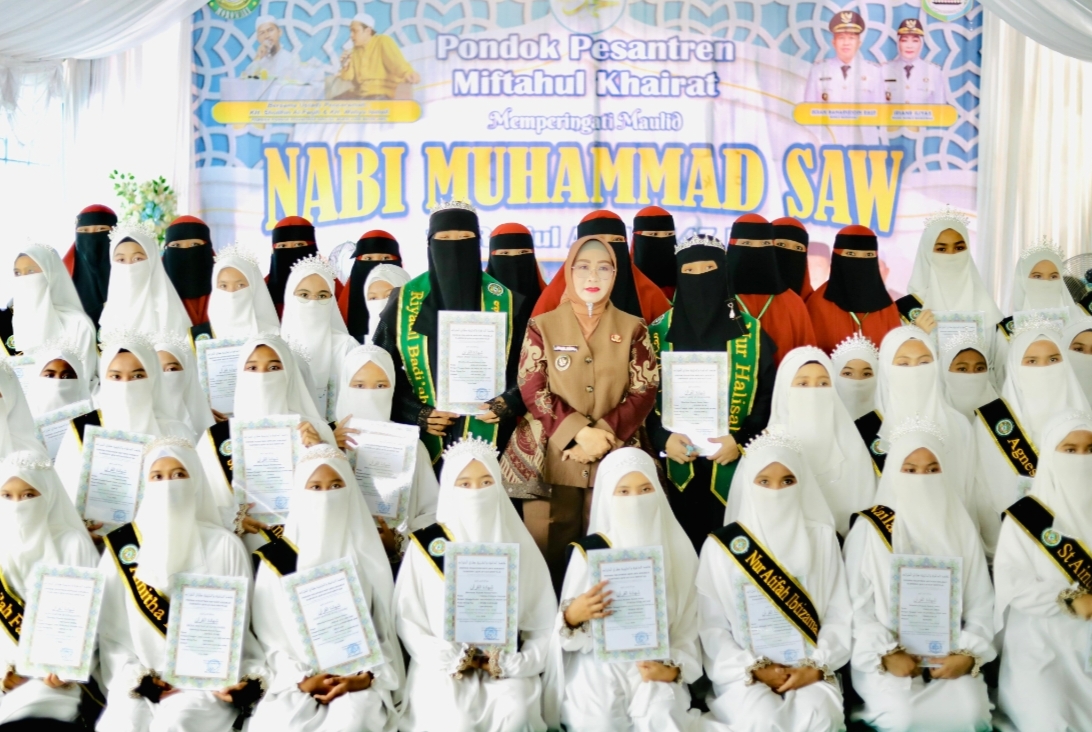 Peringatan Maulid Nabi Muhammad SAW dan wisuda tahfidz di Ponpes Miftahul Khairat berlangsung khidmat, dengan nuansa religius yang kental. Selain penampilan hadroh, tari jepeng dan pembacaan maulid, para wisudawan tahfidz juga satu persatu menerima piagam kelulusan yang diserahkan langsung oleh wabup Iriane Ilyas untuk wusudawan putri, sementara untuk wisudawan putra diserahkan oleh Sekda, Yusman Mahbub, yang disambut haru dan bangga oleh para undangan yang hadir.